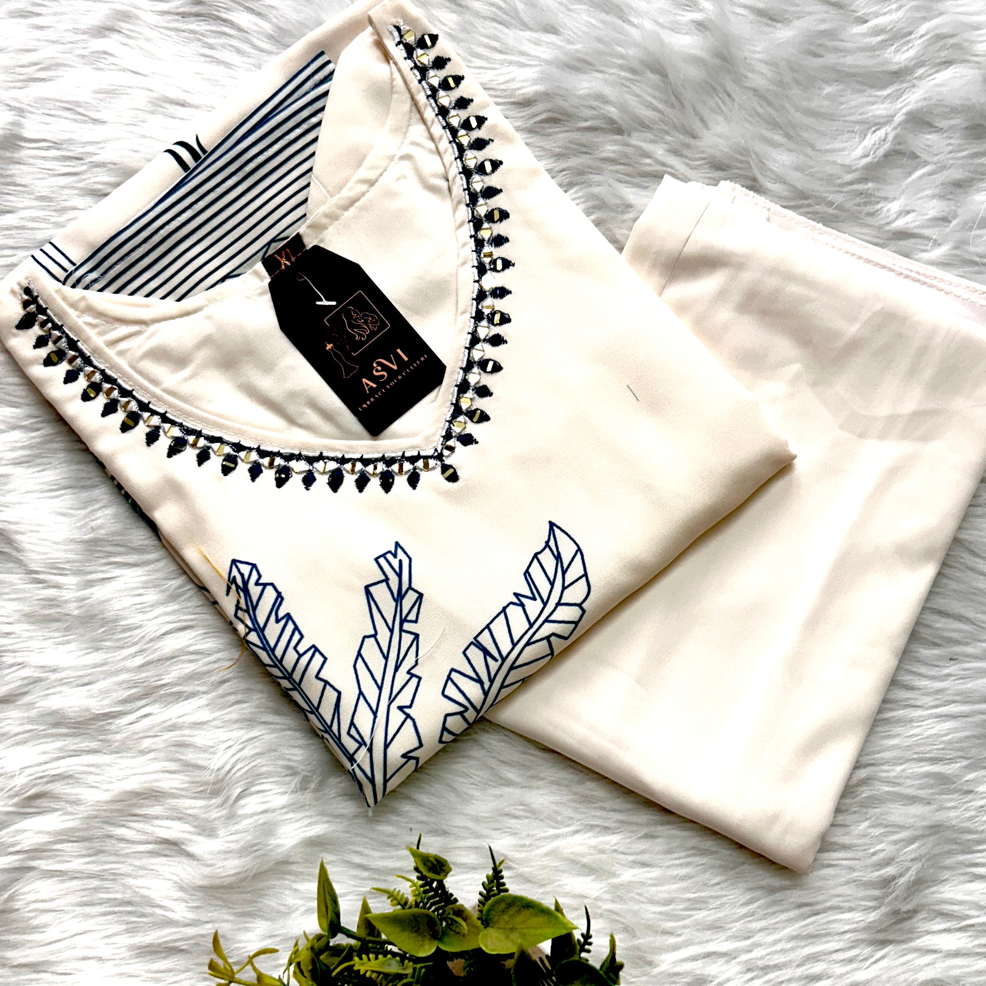 CLASSIC WHITE RAYON COTTON KURTHI – U-NECK HANDCRAFTED