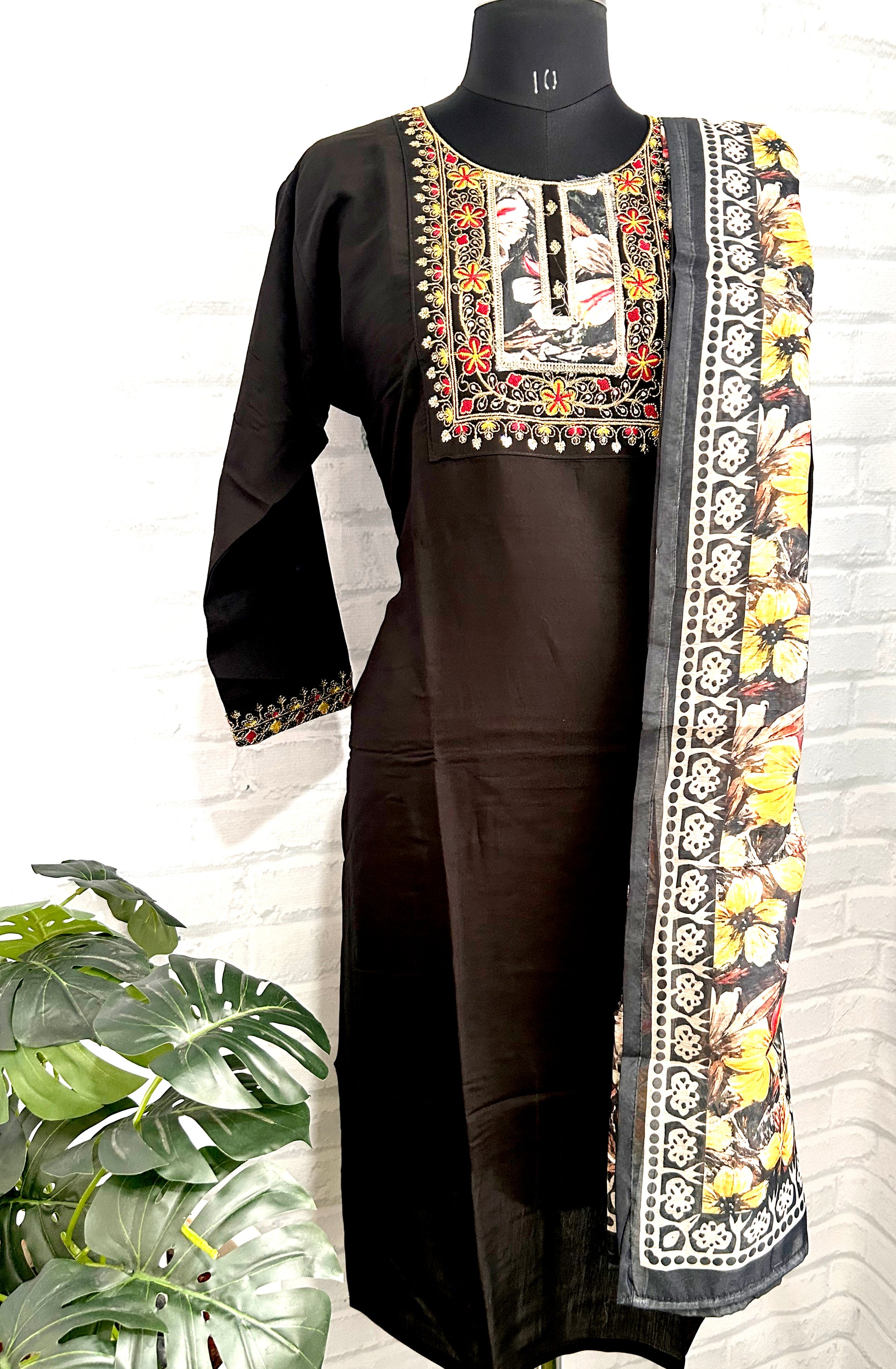 ELEGANT BLACK ROMAN SILK EMBROIDERED KURTHI SET – LUXE MEETS TRADITION