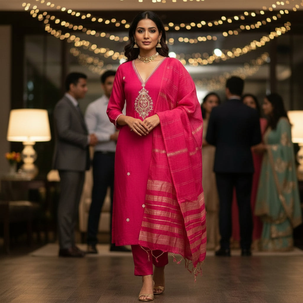 Perfect for office wear, casual outings, or small festive gatherings, this versatile piece brings understated beauty to your ethnic wardrobe.
